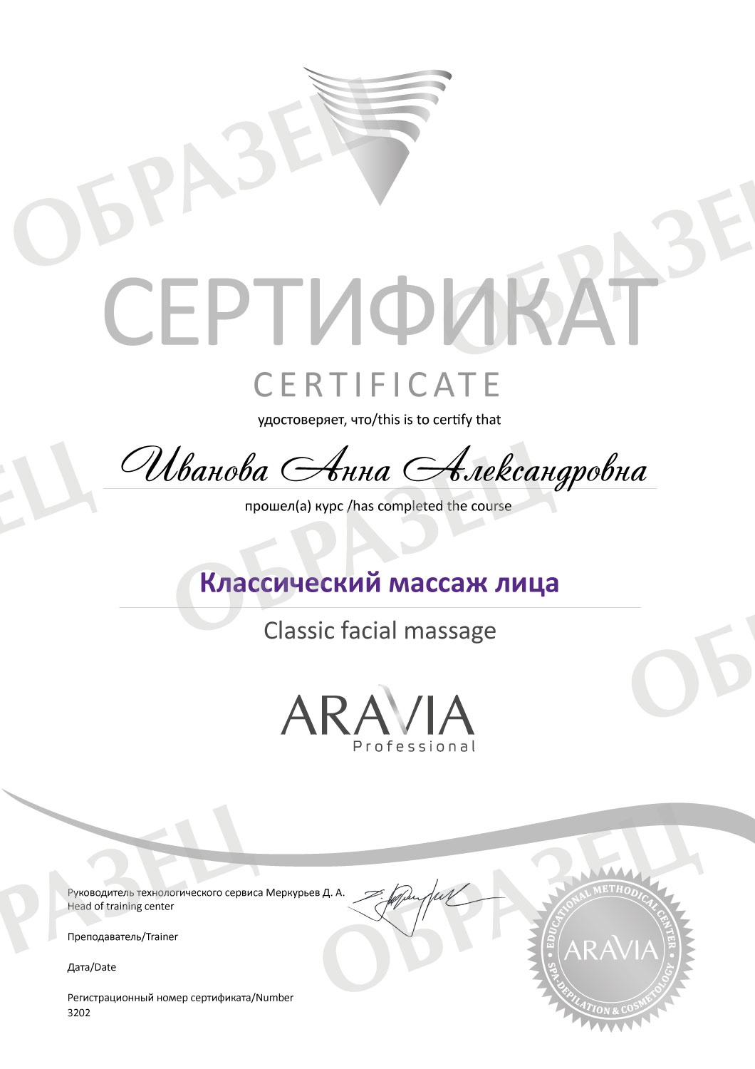 После прохождения курса участники получат пособие по массажу, каталоги средств, прайс-листы и именной сертификат о прохождении обучения по направлению «Классический массаж лица».