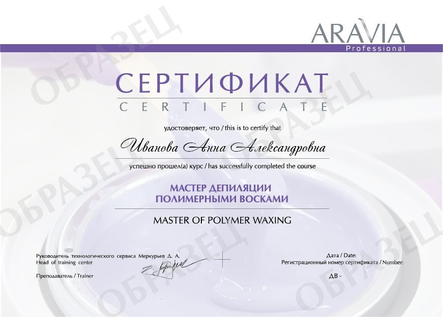 После прохождения курса участники получат методическое пособие ARAVIA Professional, прайс-лист и именной сертификат о прохождении обучения «Депиляция полимерным воском и SPA-шугаринг ARAVIA Professional».